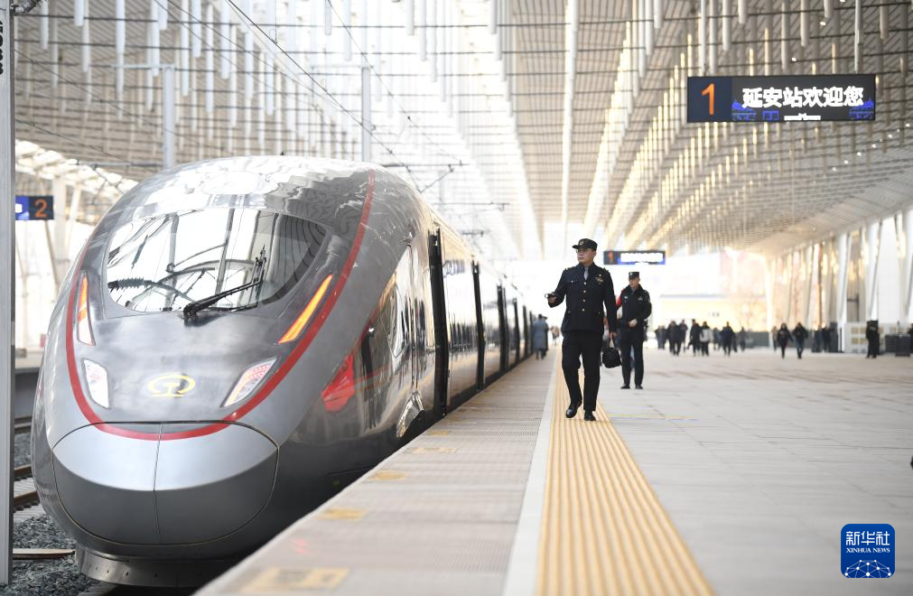 西安至延安高速鐵路正式開通運營,革命圣地延安邁入“高鐵時代”。西延高鐵是中國“八縱八橫”高鐵網包頭、銀川至??诘陌ㄣy)海通道的重要組成部分。線路全長299公里,設計時速350公里,是目前穿越黃土高原設計時速最高的鐵路。